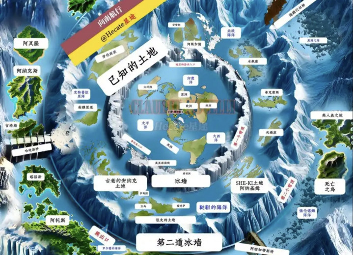 如果说地球是的圆形,最下面和旁边的人和物,不都得掉出地球,物理学家解释因为万有引力,地球自身的重力让万物不会掉出去,这解释也挺合理的,但是地平说者认为根本不存在万有引力,因为地是平的才会掉出去,不断的在向上飞行,世间万物包括潮汐都受影响,像是联合国的标志,也是和地平说的人描述一致,更加有遐想南极冰墙外还有其它世界,我们所谓的地球不过是地平上的一小圈罢了,越过南极冰墙可能会到达另一个世界,神话里有描述三界,天界,凡界,地界,虽然世界用着不同的语言,但是默认神话都是存在三界的,西方就是天堂,人间,地狱,很多神话佐证地球就不可能是圆的,而更像被封锁在一个圆盘之中,只占到这个圆盘之中一个小圈,突破这个南极冰墙会进入另一个世界。