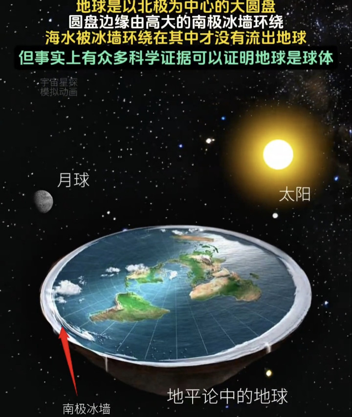 总之,能证明地平说谬论没有科学依据,比如你在地上无论怎么站,你看的地平线永远是平的,甚至天空出现两个月亮,两个太阳,云在月亮后面也都不足为奇,很多时候我们所看到的真相未必是真相,所以听到的高谈阔论也未必是假的,但是我们还是得相信科学,以我们目前科学水平给我们的答案,地球就是圆的,想要证明地平说,所做的实验总是败给物理特性,所以想让你看到就是地球就是圆的,是否存在其它未知,我们还不得而知,虽然我们的科技足以上天了,但下海和入地下难度远比上天还要难,深海压强和地下超高温,目前人类的科技还克服不了,所以还是选择上天比较容易,地球还有很多未知生物和未知奇观,等待人类去探索呢!就如神秘的南极,地平说者的世界边缘高墙,人类科技这么强大,就算有很强的破冰船,去到南极都得抖三抖,比如最怪就是仪器失灵,气象怪异难以预测的暴风雪,所以不让进入南极也是有原因的。